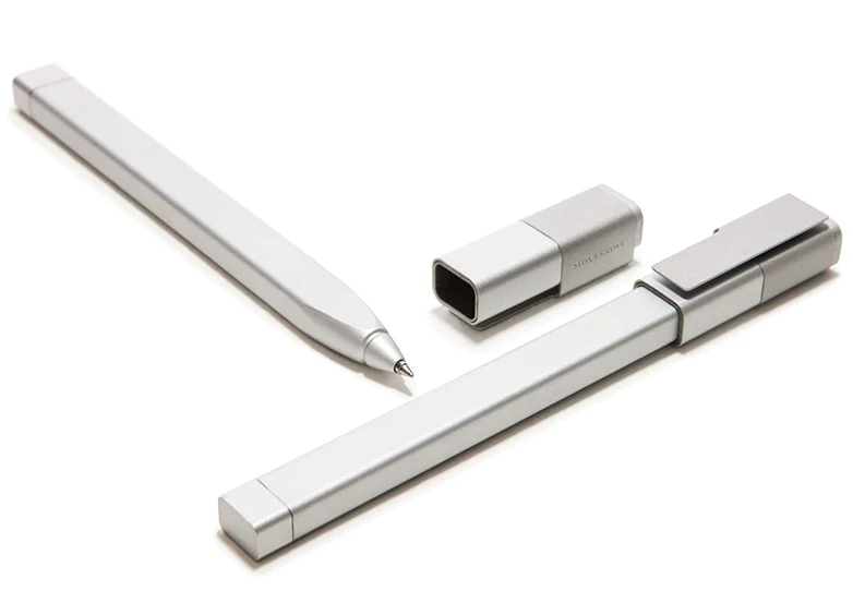 Simples e sofisticadas, as Roler Pen Metalizadas são feitas em latão cinza fosco e alumínio lacado.